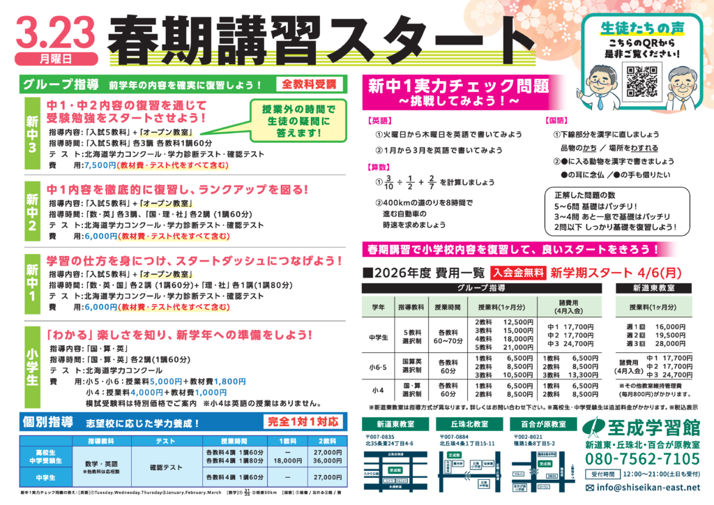 ・3/23(月)…春期講習会スタート
